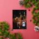Winter Magic und Frohe Weihnachtskarte. Die Vorderseite ist eine echte Folie auf den Bäumen und den Text. Karo der Zeitlaps, die Zazzle zur Verfügung stellt. Der dunkle Hintergrund mit goldenen Farbtönen und verbranntem Rot ist am besten geeignet, um zu glänzen. Es gibt ein Stück Geschichte mit einem kleinen Mädchen und einem Baby, einem Rabe und einem Fuchs und schönen, vereitelten Bäumen. Man kann die Goldfolie verwenden, aber das Beste ist die Rose Gold. Aktualisieren Sie mit Ihrem Familiennamen und es gibt einen Urlaubswunsch auf der Rückseite der Karte. Frohe Weihnachten! Alle Zeichen wurden mit Aquarellfarbe gemalt.