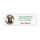 Auf diesem Holiday-Rücksendelabel ist ein majestätischer Rottweiler-Hund in einem grünen Weihnachtskranz mit einem roten Bogen oben gerahmt. Ihr benutzerdefinierter Text ist rechts grün, unten steht ein Textfeld für einen Gruß in rot.