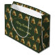 Frohe Weihnachtsbaum mit Kerzen Elegante Gold Imitate Gold Brown on Hunter Green Background Weihnachtsbaumen mit Geschenk Tag Label Design, können Sie den benutzerdefinierten Text Frohe Weihnachten ändern! Mit Liebe, Weihnachtsmann mit Ihrem Namen und Text, Großes Geschenktasche