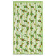 Adorable, skurril lächelnde Weihnachtsbaum mit bunten Lichterketten und einem leuchtend leuchtenden gelben Stern auf einem grünen Streifen Hintergrund Muster.