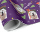 Das fröhliche und stilvolle Design dieses Weihnachtsverpackungspapiers hat 2 individuelle Fotos, die Sie mit Ihren eigenen wechseln können. Es bietet auch traditionelle grüne Weihnachtsbäume, Schneeflocken und Sterne auf lila Hintergrund. Dieses Packpapier ist perfekt für Ferien elegante Geschenke für Ihre Lieben.
