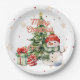 Frohe Weihnachtsbaum Snowman und Geschenke Pappteller