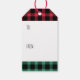 Zu und von weißen Weihnachtsgeschenktafeln mit einer Aquarellkiefer-Abbildung. Weihnachten kariert in Rot und Grün fügen eine rustikale Touch zu den festlichen Geschenkmarken.Personalisieren Sie mit Familiennamen.