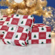 Dieses rot-weiße Schachbrettmuster hat einen grünen Weihnachtsbaum mit einem Stern auf den weißen Plätzen. Die roten Quadrate haben weißen Text, den Sie bearbeiten können, um eine personalisierte Nachricht wie einen Feiertagsgruß und Ihren Namen zu zeigen. (Geschossen: Frohe Weihnachten von den Andersons)