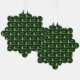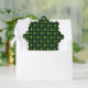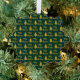 Frohe Weihnachten erscheint in einem Imitat (nicht Folie) goldene Schrift auf diesem sehr dunkelgrünen und goldenen Ornament. Imitate goldene Weihnachtsbäume bilden ein Muster mit dem Text. Sie können den Text auf Wunsch bearbeiten.