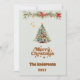 Ein schlauer grüner Hintergrund, goldener Text und Foto vorne. Dekoriert mit einem Weihnachtsbaum und einer Kieferngarage mit roten Poinsettia-Blume. Ihr Text und Ihre Namen auf der Rückseite. Frohe Weihnachten ist mit einem Retro-Schriftart geschrieben.
