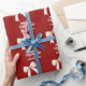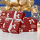 Klassischer roter Hintergrund, cremefarbener Text und Bogen. Frohe Weihnachten ist mit einem Retro-Schriftart geschrieben. Personalisieren und Hinzufügen eines Namens
