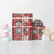 Feierliche Foto Collage Frohe Weihnachts-Rot Packpapier mit Weihnachtsdekorationen und niedlichen Schneeflocken