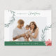 Frohe Weihnachten. Feiern Sie die Saison mit dieser Foto-Postkarte. Es ist vollständig anpassbar und personalisiert mit Ihren eigenen Grußbotschaften. Bitte fügen Sie Ihre Rücksendeadresse für einfaches Mailen hinzu. Es ist einfach, einfach, aber modern minimalistisch und festlich, mit Salbei grünen Aquarellfarben botanischen Eukalyptus Wreath und Grün Thema. Dies ist die perfekte Postkarte für Ihre Urlaubswünsche.
