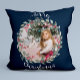 Frohe Weihnachtsfamilie Foto Blue Throw Kissen. Personalisieren Sie das Kissen mit Fotos Ihrer Wahl und kreieren Sie ein Weihnachtsgeschenk!
