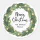Diese trendigen und stilvollen Weihnachtsaufkleber verfügen über einen hübschen, wasserfarbenen Weihnachtskranz mit goldfarbenen Sternakzenten und Lichtern, mit moderner Schriftzeichen-Kalligraphie, die auf weißem Hintergrund "Frohe Weihnachten" sagt.