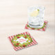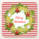 Paper Untersetzer zeigt Frohen Weihnachtstext im Urlaubskrez auf rot-weiß gestreiften Mustern.