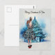 Frohe Weihnachtsfrau und blauer Weihnachtsbaum Postkarte