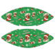 Weihnachtsfussball mit diesem coolen und einzigartigen Weihnachtsfußballspiel, bei dem ein Fußballspieler eine Weihnachtsmannmütze trägt und in einem weißen Kranz inmitten beliebter Fußballsnacks sitzt. "Fröhliche Weihnachten" süße Cane Stripe Worte, Fußball Winter Cleates, und Candy Cane verwoben mit Fußball.