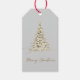 "Lassen Sie Ihre Weihnachtsgeschenke mit Raffinesse glänzen und verwenden Sie dieses elegante Weihnachtsgeschenkschild mit einem atemberaubenden Weihnachtsbaumbaum-Set vor einem weichen grauen Hintergrund. Dieses Design mit einem anmutigen "Frohen Weihnachten"-Skript im Stil einer Goldfolie verleiht Ihrem Geschenkpapier einen dezenten Luxus und zeitlosen Charme. Ideal für diejenigen, die moderne Eleganz mit festlichem Funkeln Liebe haben, ergänzt dieser Anhänger eine Geschenkpackung mit neutralem, goldenem oder metallischem Thema - ideal für persönliches, berufliches oder hochwertiges Geschenk."