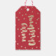 Ein lustiges, skurriles Weihnachtsgeschenk-Tag mit handgeschriebenem Frohen Weihnachten in Gold auf einem texturroten Hintergrund. Die Rückseite ist mit To und From schlicht, sodass die Namen leicht ausgefüllt werden können. Teil der Confetti Wunderland Kollektion von Stacey Meacham. Entsprechendes Zubehör und weitere Farboptionen finden Sie hier: https://www.zazzle.com/collections/confetti_wonderland-119260260182491022