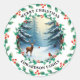 Frohe Weihnachtshirsche und Rotwein Familienname Classic Round Sticker Du kannst sie personalisieren und deinen eigenen Text und Namen hinzufügen.