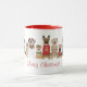 Niedliche Darstellung von Hunden in Weihnachtsbekleidung.