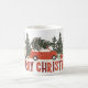 Weihnachten Tasse mit Autos und Vintagen rustikalen Bäumen, mit frohen Weihnachten. Ideal für eine gemütliche Weihnachtszeit.