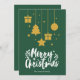 Grün frohe Weihnachten in einem extravaganten Schriftart dekorativer Schrift in weiß hängenden Weihnachtsbildern Design. Diese grüne Hintergrundfarbe Weihnachtskarte ist so konzipiert, dass Sie die Farbe des Hintergrunds ändern können und auch Ihren Familiennamen eingeben oder entfernen können, wenn Sie nur das Design ohne den Text haben möchten. Sie können auch die Farbe der Worte "Frohe Weihnachten", wenn Sie möchten anpassen.