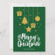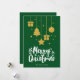 Grün frohe Weihnachten in einem extravaganten Schriftart dekorativer Schrift in weiß hängenden Weihnachtsbildern Design. Diese grüne Hintergrundfarbe Weihnachtskarte ist so konzipiert, dass Sie die Farbe des Hintergrunds ändern können und auch Ihren Familiennamen eingeben oder entfernen können, wenn Sie nur das Design ohne den Text haben möchten. Sie können auch die Farbe der Worte "Frohe Weihnachten", wenn Sie möchten anpassen.