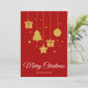 Frohe Weihnachten in einem extravaganten kalligraphischen Schriftart mit hängenden Weihnachtsbaum, Geschenke, Stern und Weihnachtsbaumdesign. Diese rote Hintergrundfarbe Weihnachtskarte ist so konzipiert, dass Sie die Farbe des Hintergrunds ändern können und auch Ihren Familiennamen eingeben oder entfernen können, wenn Sie nur das Design ohne Nachname haben möchten.