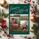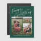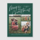 Das Green Merry Weihnachtskalligraphie Foto Magnetic Card verfügt über moderne Kalligraphie-Schrift auf der Vorderseite, zusammen mit drei Fotos, und ein festliches Weihnachtsfest auf der Rückseite kariert.