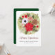 Diese elegante, einfache und moderne Weihnachtskarte ist perfekt für die Ferienzeit. Hier finden Sie einen Blumenstrauß mit roten Poinsettien, Kiefernsteinen, Beeren und weißen Blume. Es ist minimal und super einfach mit Ihrer eigenen persönlichen Nachricht zu bearbeiten.