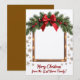 Fügen Sie Ihren Urlaubswünschen eine persönliche Touch mit dieser individuell anpassbaren **Frohe Weihnachtskarte** hinzu. Mit einem festlichen Garagenrahmen mit rotem Bogen eignet sich dieses Design perfekt für die Präsentation Ihres Fotos oder eines besonderen Gedächtnisses. Die eleganten Schneeflocken-Details und die warmen Farbtöne verleihen ihm eine gemütliche und rustikale Atmosphäre. Personalisieren Sie den Text mit Ihrem Familiennamen oder einer herzlichen Nachricht, um einen einzigartigen Sake für Freunde und Lieben zu schaffen. **Ideal für:** Sende warme Urlaubswünsche an Familie, Freunde oder Kollegen.