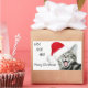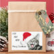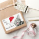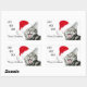Silber Tabby Kätzchen in einer Weihnachtsmannmütze mit offenem Mund geben ein fröhliches Ho ho ho, frohe Weihnachten Gruß rechteckigen Aufkleber. Text kann leicht verändert oder entfernt werden, Kätzchen kann neu positioniert werden.