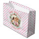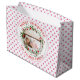 Frohe Weihnachtsblumenkranz mit rosa und weißem Polka Dot-Muster Foto große Geschenktasche. Personalisieren Sie mit Ihrem eigenen Foto und Text.