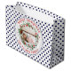 Frohe Weihnachtsblumenkranz mit marineblau-weißem Polka Dot-Muster Foto große Geschenktasche. Personalisieren Sie mit Ihrem eigenen Foto und Text.