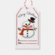 Frohe Weihnachtsmarke mit einem lächelnden Schneem Geschenkanhänger