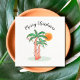 Die Papierservietten im Inselstil sind mit Palmen und Sonnenschirmen geschmückt. Sie sagen frohe Weihnachten, aber du kannst die Worte ändern, wenn du willst. Weil wir unsere eigenen Kunstwerke erstellen, werden Sie dieses exakte Bild von anderen Designern nicht finden. Original Wasserfarbe © Michele Davies.