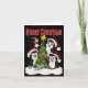 Drei niedlichen Pinguine mit einem Weihnachtshut versammeln sich um einen Weihnachtsbaum, ein Rotkehlchen ist frech auf einem Pinguinhut gekrönt, während ein niedliches Kaninchen unter dem Baum sitzt. Perfekt für alle Altersgruppen