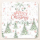 Frohe Weihnachtsrot und grüne Schneebäume Rechteckiger Pappuntersetzer