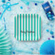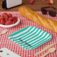 Niedliches blaues Streifen-Design und Logo. So schön in einer familiären Ansammlung.