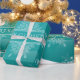 Ein hübsches Design eines Weihnachtsbaumes mit Dekorationen. Reben, weiße Blume und Schneeflocken umgeben den Gruß des Urlaubs. Das Zentrum ist die traditionelle frohe Weihnachtsbotschaft. Das ganze Set auf einem wunderschönen Aqua, Zyan und aquamarinen Gradienten ombre Hintergrund. Dieses Design ermöglicht die Anpassung aller Texte, um dies zu einer wirklich persönlichen Nachricht zu machen.