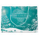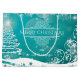 Ein hübsches Design eines Weihnachtsbaumes mit Dekorationen. Reben, weiße Blume und Schneeflocken umgeben den Gruß des Urlaubs. Das Zentrum ist die traditionelle frohe Weihnachtsbotschaft. Das ganze Set auf einem wunderschönen Aqua, Zyan und aquamarinen Gradienten ombre Hintergrund. Dieses Design ermöglicht die Anpassung aller Texte, um dies zu einer wirklich persönlichen Nachricht zu machen.