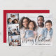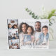 Moderne Urlaubskarte mit Ihrem Foto überlagert mit einem filmartigen Streifen aus drei kleinen quadratischen Fotos, "Frohe Weihnachten" in einem schicken Drehbuch und Ihrem Namen in einfacher Typografie.