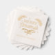 Frohe Weihnachtsschrift Personalisierter Firmenname Real Foil Napkins enthält den Text "Frohe Weihnachten" in eleganter Schrift Typografie mit Ihrem Firmennamen oder Text unten in Echtfolie. Akzentuiert von Sternen, Wirbel und Blätter. Ideal für Weihnachtsfeiern, Firmencocktail-Party, Geschäftsfeiern. Erstellt von Evco Studio www.zazzle.com/store/evcostudio