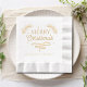 Frohe Weihnachtsschrift Personalisierter Firmenname Real Foil Napkins enthält den Text "Frohe Weihnachten" in eleganter Schrift Typografie mit Ihrem Firmennamen oder Text unten in Echtfolie. Akzentuiert von Sternen, Wirbel und Blätter. Ideal für Weihnachtsfeiern, Firmencocktail-Party, Geschäftsfeiern. Erstellt von Evco Studio www.zazzle.com/store/evcostudio