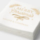 Frohe Weihnachtsschrift Personalisierter Firmenname Real Foil Napkins enthält den Text "Frohe Weihnachten" in eleganter Schrift Typografie mit Ihrem Firmennamen oder Text unten in Echtfolie. Akzentuiert von Sternen, Wirbel und Blätter. Ideal für Weihnachtsfeiern, Firmencocktail-Party, Geschäftsfeiern. Erstellt von Evco Studio www.zazzle.com/store/evcostudio