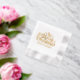 Merry Christmas Script Corporate Personalisiert Business Name Real Foil Napkins zeigt den Text "Frohe Weihnachten" in eleganter Schrift Typografie mit Heilige und Schneeflocken mit Ihrem eigenen Firmennamen oder Text unten in echter Folie. Ideal für Weihnachtsfeiern, Firmencocktail-Party und Feierlichkeiten für Geschäftsreisende. Erstellt von Evco Studio www.zazzle.com/store/evcostudio