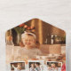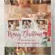 Farbige rote Poinsettia und heilig auf rustikalem Stallholzhintergrund mit drei kleinen quadratischen Fotovorlagen und einem großen Foto mit individuellem Merry Weihnachtskalligraphie Skript-Schriftart und bearbeitbaren Textfeldern. Die Panels verfügen über ergänzende Grafiken, Bildvorlagen und zusätzliche Textfelder.