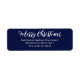 Frohe Weihnachts-moderne Drehbuch-Rücksendeadressen-Aufkleber. Vollständig anpassbarer weißer Text auf marineblau Hintergrund. Ideal für Weihnachten und Feiertage.