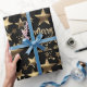 Frohe Weihnachtsstars Schwarzes Gold Elegante Scri Geschenkpapier