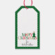 Feierliche Geschenketiketten personalisiert mit Ihrem Namen. Hübsche frohe Weihnachtswortkunst mit einem einzigartigen typografischen Stil. Die Buchstaben sind eine Mischung aus Rot, Grün und Gold für einen interessanten Look. Die Vorderkante und die Rückseite jedes Tags sind grün mit weißen Polka-Punkten. Fügen Sie einfach den Namen des Empfängers hinzu und fügen Sie ihn für die perfekte Touch an.
