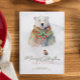 Dieses Design ist voll von Farbe und der Freude der Weihnachtszeit, mit einem Eisbär mit roten Beeren und heiligen Akzenten. Elegante Skripttypografie mit Red Robin. Vintages Ambiente, Winterwunderland Urlaubskartendesign.