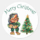 Frohe Weihnachtswache und Baumfreude Runder Aufkleber